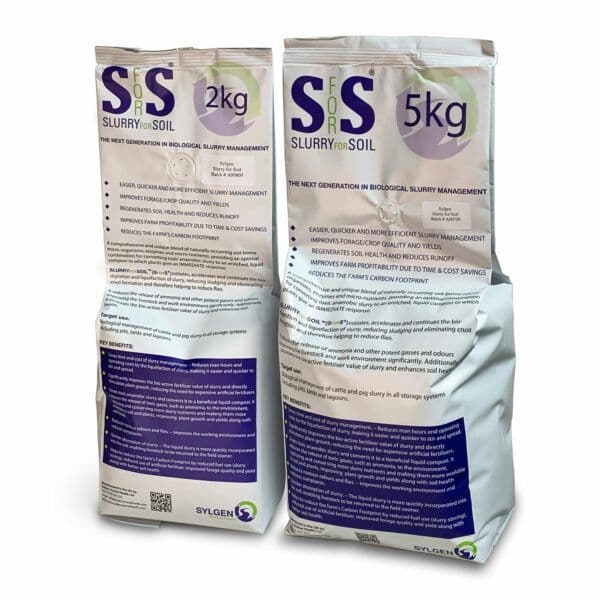 SlurryForSoil™ is sold in packs of 2kg or 5kg and costs £57.50/kg. How much you need will depend on how much slurry you’re treating. As a guide it’s 1kg of SlurryForSoil™ for every 120m3[n1] of slurry.