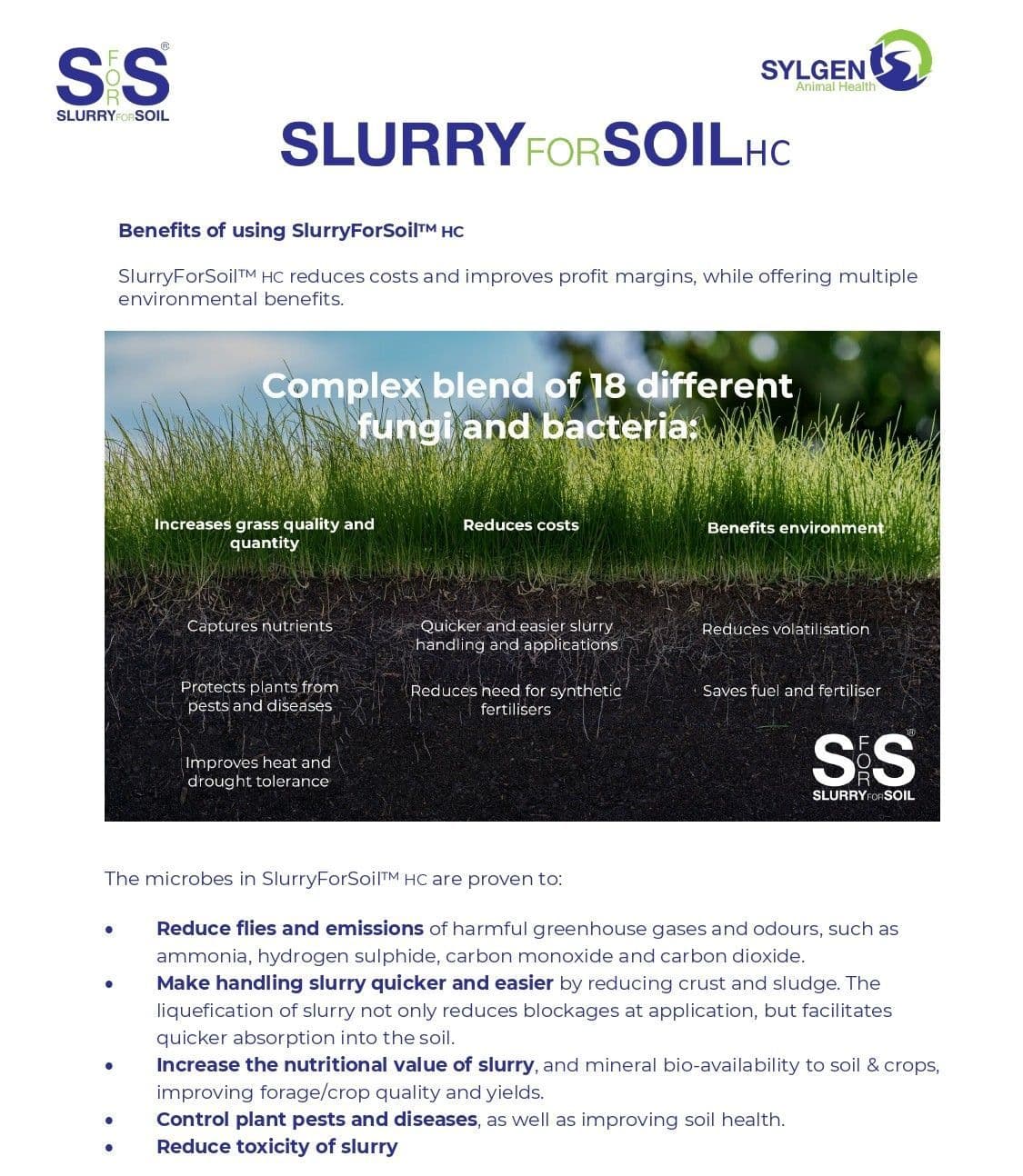 Researchers at Duchy College found that SlurryForSoil™ – a complex blend of microorganisms and enzymes – not only reduces the need for synthetic fertilisers, lowers emissions and increases grass yields, but suggest it benefits soil health and can contribute to reducing carbon emissions too.